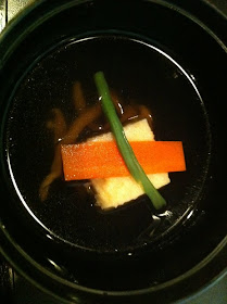 Top: milk bonito mousse with bonito broth jelly, marinated deep fried fish with vinegar, and "chingensai" - whatever it is! The bonito mousse was pretty unique, with a very savoury taste. I quite enjoyed it.